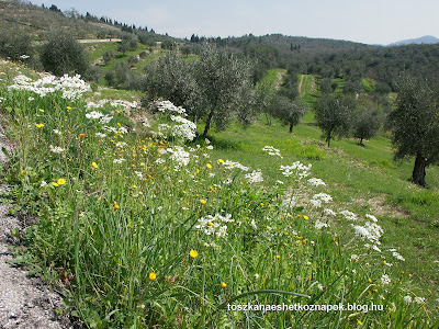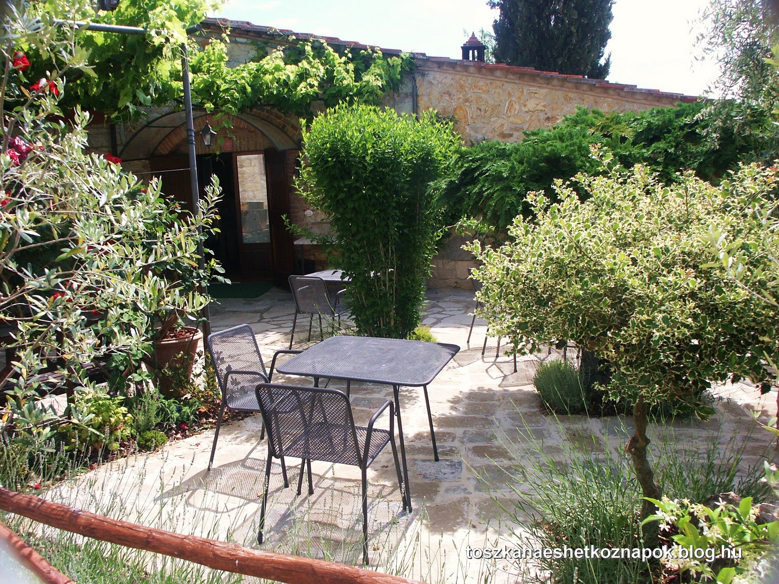 Feleségével, a német Karinnal nagyon hamar megkedveltük egymást. Amikor megérkeztünk, ő még pár hétig külföldön volt, de a híre megelőzte. Orvosként dolgozott Montevarchiban, a dombocskánktól mintegy 30 km-re. Négy gyermekük közül a két idősebb többnyire nem lakott otthon, mert távoli egyetemekre jártak, a két kisebb 17 és 19 éves, gyönyörű, értelmes arcú lányok. Nagyon szabad gondolkozásúnak is tűntek: az egyikük zokniban rohangászott a házak közt, amikor átugrott a barátnőjéhez, a fiatalabbik pedig – néha viccelődtünk, hogy talán angyali külsejét ellensúlyozandó – egy piercingekkel borított fiúval járt együtt.