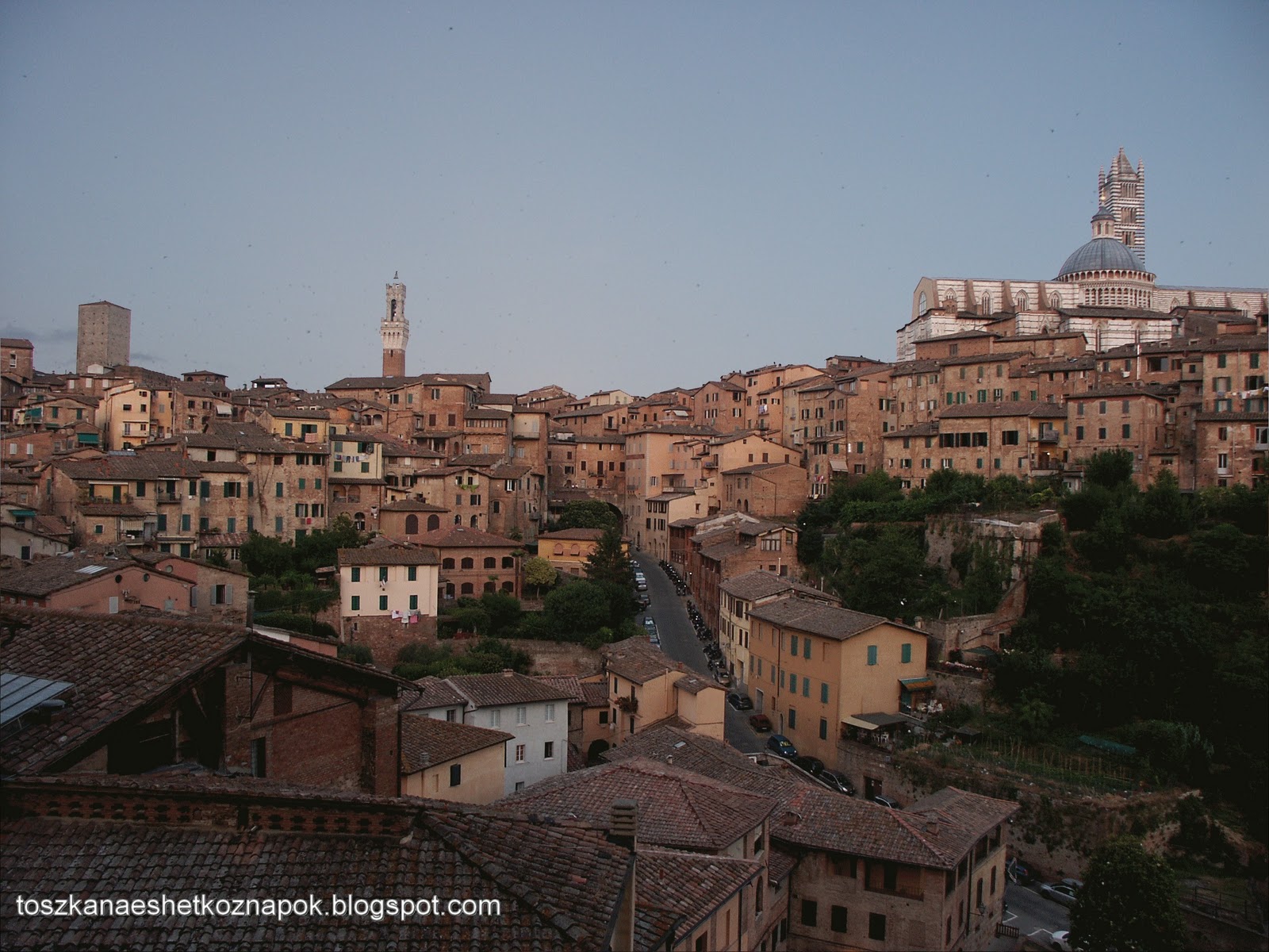 A feleség álomnyaralása volt ez a néhány nap, az ő olasz őseinek leszármazottaival akartak találkozni, két éve félretettek minden pénzt, hogy itt lehessenek. Sienába azért jöttek szerdán, mert a szállásadónőjüktől megtudták, hogy olyankor piac van. Szóba került, hogy én mi járatban vagyok itt, majd segítettem nekik ingyen várostérképet szerezni. Amikor az egyik főcsapásnak számító sétálóutcán elbúcsúztunk, megállapodtunk, hogy ha lesz kedvük délután egy autentikus Chiantibeli házat megnézni, és enni hozzá egy kis magyar paprikás krumplit, akkor telefonálnak.