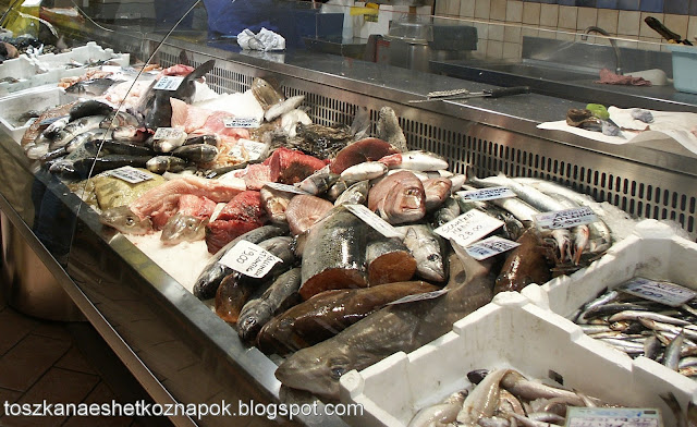 Ezután a piac keresésére indultam, mert engem is nagyon érdekelt. Először a Campo közelében kutakodtam, de onnan elirányítottak a San Domenico közelébe. A buszpályaudvarnál már látható volt, hogy merre hömpölyögnek az emberek, és rövidesen látszottak az első árusok is. A legtöbb sátorban ruhát, vagy csecsebecséket árultak, legalább két sornyi árus kerti és szobanövényeket kínált, de jókora terület jutott az élelmiszereknek is. Volt egy mézes bácsi gesztenye- és kakukkfű-, meg eukaliptusz- és narancsvirág mézzel. Lehetett mindenféle szalámit és sonkát kapni, a pár centi átmérőjűtől a húsz centi vastagig. Láttam sokféle juhsajtot, fűszereseket, érleltet, félérlelteket, és nyersebbeket is. Csak ámultam a zöldségkínálaton - épp articsókaszezon volt - a halak, rákok és kagylók kupacai között andalogva pedig rettenetesen sajnáltam, hogy nem elég, hogy nem tudom, mit lehetne belőlük készíteni, de gyakran még a nevüket sem.