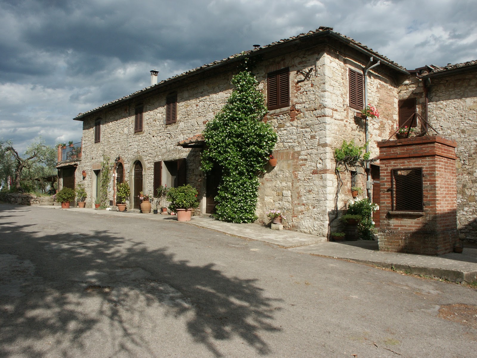 Kiderült, hogy neki sem volt egyszerű a napja. Ugyebár elvitte a saját autójába pakolt cuccokat a leendő lakóhelyünkhöz, és ott Maria, a házat nekünk átadó addigi lakó segítségével mindent kipakoltak, majd visszaindult, hogy a szerviznek az esti zárása előtt még az ott lévő Chryslerünkből a maradék cucc újabb részét bepakolja az ő autójába, és felvegyen utána minket. Csakhogy az idegesség miatt nem evett, emiatt, és a pesti indulás előttről is gyűjtögetett alváshiány miatt legyengült, a Firenze és Monti in Chianti közötti szűk kanyarokat – merthogy nem a gyorsforgalmi úton ment - hegyen-völgyön át visszafelé már nagyon rosszul bírta, úgyhogy mire a szervizbe ért, alig élt a fáradtságtól és a rosszulléttől. Mindenesetre a szerviz emberei nagyon kedvesek voltak, és látván a kiszolgáltatottságát, átpakoltak neki amit csak gondoltak az egyik autóból a másikba, így sikerült az este 19.00 órai zárásra befejezniük. Akkor evett egy kicsit, és elindult értünk a hídhoz, és ugyan hosszú kacskaringózás, útkeresés után, de végül megérkezett.