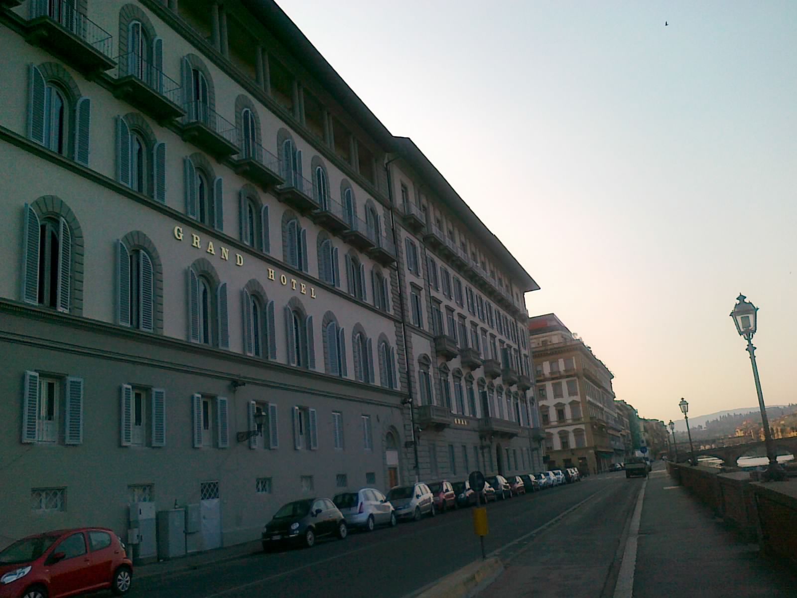 A nagy menetelés vége felé elértük a Porta al Prato városkaput, és nem sokkal délután 5 előtt elénk tárult az Arno folyó. Egy ideig mentünk a partján, azután valahol a Ponte a Santá Trinitánál, azaz 1 híddal a híres Ponte Vecchio előtt bekanyarodtunk a házak közé barangolni.